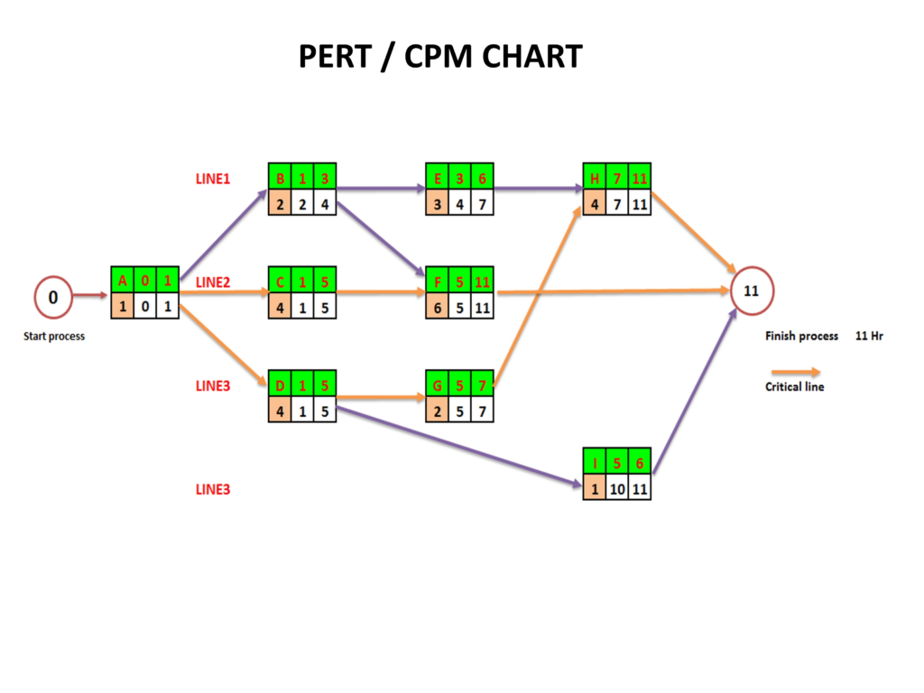 • Total Float (Slack): The amount of time a non-critical task can be delayed without affecting the project completion date.