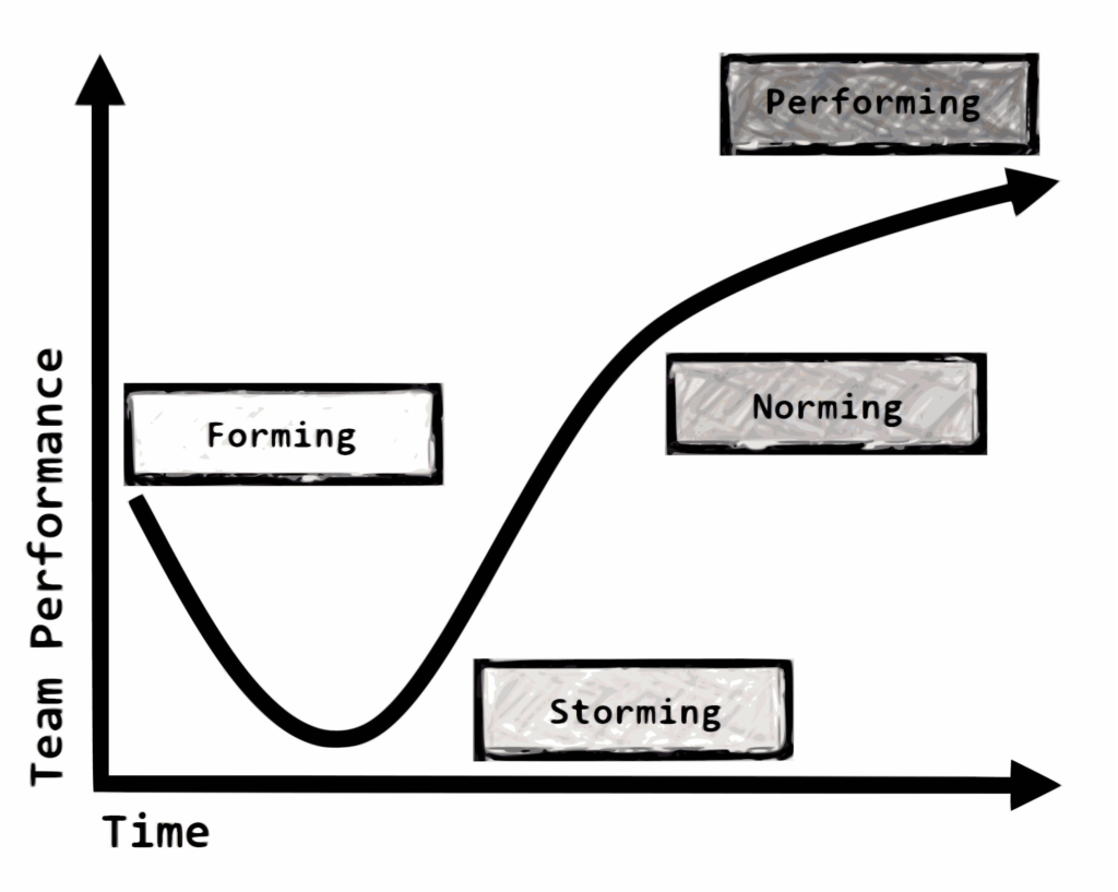 1. Forming: Members are polite but guarded. Roles are unclear.